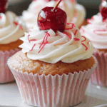 These Cherry Almond Cupcakes feature a moist almond-infused cake topped with cherry frosting and a cherry on top, striking the perfect balance of sweet and nutty.