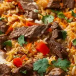 I love how this dish feels like a fiesta with minimal effort. It combines fluffy, tomato-infused rice with juicy steak seasoned just right, all bathed in smooth queso. Whether I’m using stovetop rice or ready-pack, it comes together in about 35–60 minutes and tastes restaurant-worthy but budget-friendly.